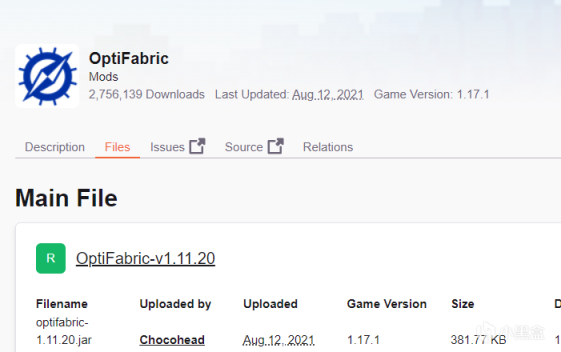 点击提示的蓝色字符或者去curseforge找到Fabric API(刚刚下载fabric页面也有蓝色字体提示)下载