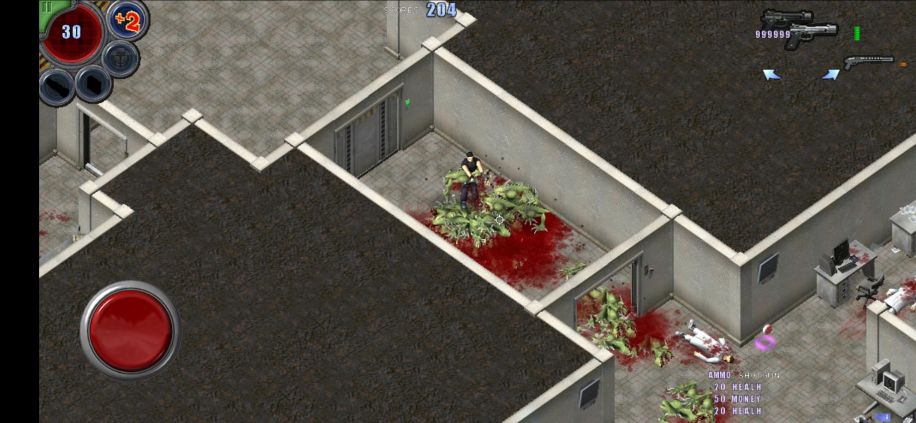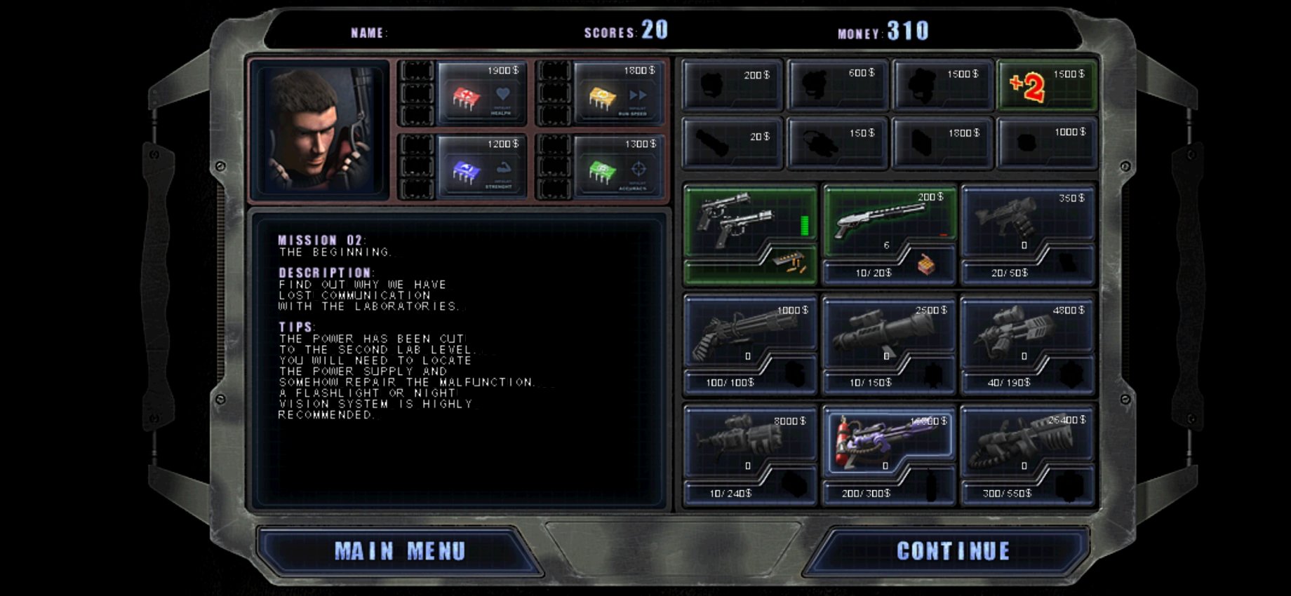 在朋友的悉心教导下,我很快的通过作弊码通了关。《孤胆枪手》有男、女两个不同的角色可供玩家选择,男性的血量更高,防御力更强,而女性角色的移动速度更快,攻击力更高。针对不同的角色玩家可以选择不同的芯片于之搭配。在武器系统上,游戏共有9把武器,9号武器最强,伤害高,攻速快,是通关的必备武器。