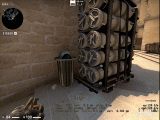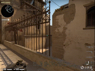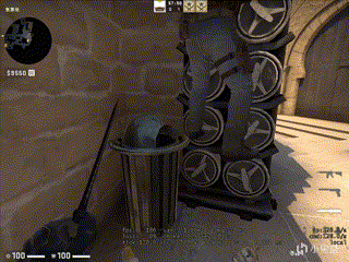 那么又到了地图理解环节了,A点这边,如果CT封了烟可以让队友踏着垃圾桶的这个沿,大家再从另一侧上去,队友是不需要蹲的,上去就能直接清包点。