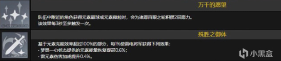 万千的愿望:打出元素微粒或者元素球可以为雷神积攒2层愿力,但是每3秒才触发一次,不过也还行,一轮输出循环大致能增加4-6层愿力,更快的积攒到满愿力