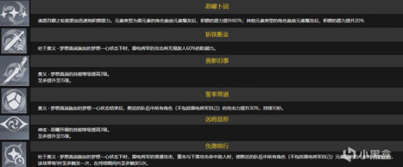 4命:为其他队友增加30%攻击力持续10秒,中规中矩的增伤命座,给雷神增添了不错的辅助能力。