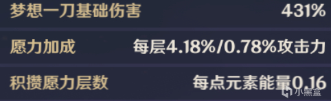 梦想真说是二段效果,先是根据积攒的愿力造成一次高额的爆发伤害,随后切换成太刀形态,太刀形态拥有无法被覆盖的雷元素附魔效果。太刀形态下雷神的普攻和重击倍率都会转换成元素爆发提供的倍率,同时攻击敌人都会给队友回复能量。