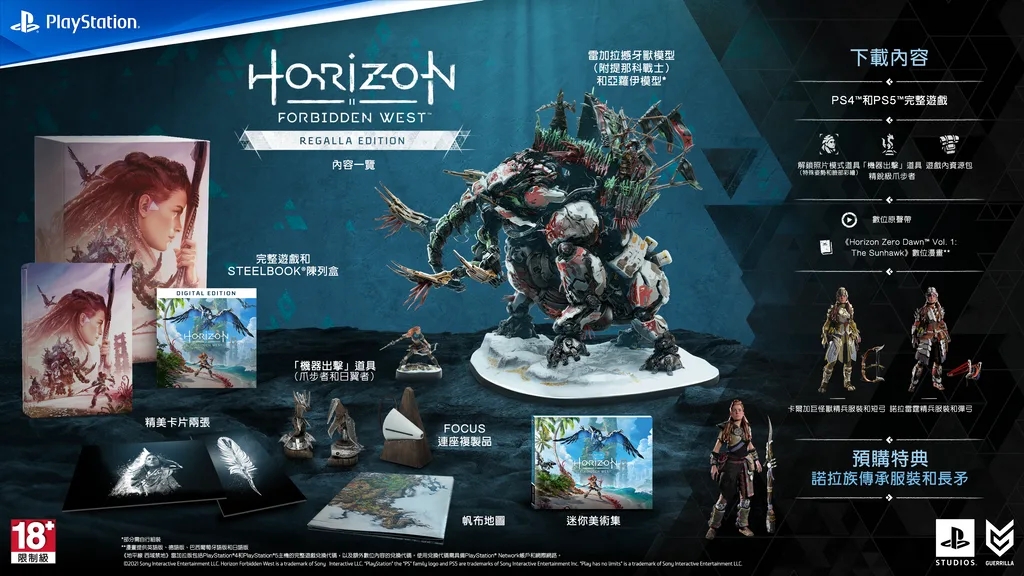 《地平线2:西部禁域》将于2022年2月18日登陆PS4和PS5,目前该游戏已经开放了全球预购,在此给大家分享各版本的详细内容,供大家在选购时参考。顺带一提的是,无论在任何地方预购任何版本,都能在游戏正式上线后获得游戏内道具“诺拉族传承服装和长矛”。