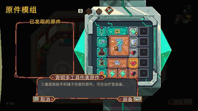 由于本作的地图与医疗模块面板紧密联系,且每次重开都是从第一个地图开始,导致玩家必须硬性的浪费几个格子放置显示地图的装置。不仅如此,宝箱位置、地洞位置都要占据主动格,显然不太合理。