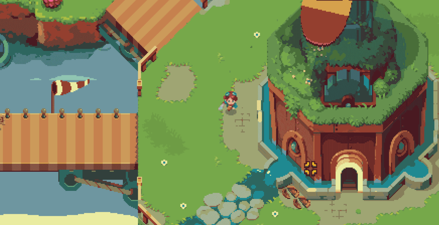 毋庸置疑的是,本作的画风堪称一绝。基本上对于画面与音乐这方面《砾石物语》确实把玩家吸引住了。细致的像素画风与暖色调的游戏场景描绘出了一个日式卡通世界,颇有几分“塞尔达”的风格,韵味十足。使得很多玩家在看完早期游戏的宣传视频后,便开始期待这款作品。