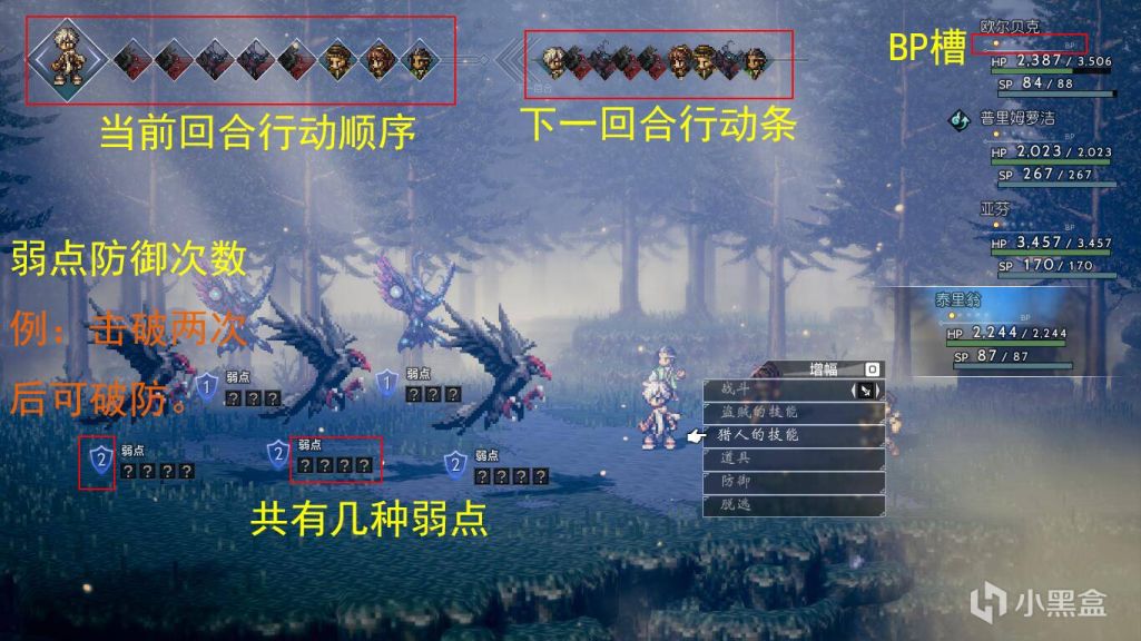 玩法上,前期并没有八方自动攒BP,那样轻松爽快。但八方整体采用的是“破盾式”的敌我不对称设计,即敌我攻防实际上是两套截然不同的系统。