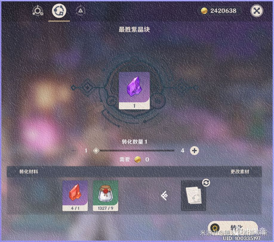 其中嬗变之尘材料可以通过星尘(或活动)兑换,商城每次兑换上限为1200