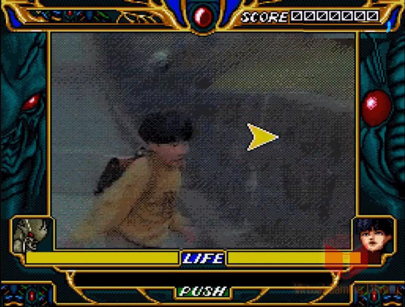 说是这么说,MEGA-CD确实有大量游戏直接加入了类似电影或者动漫的画面,意思就是说开发商们请演员演出一套剧本故事并录制成视频,将视频放入游戏里充当剧情内容,或者是制作类似动漫的片段加入游戏当中。但是因为技能限制当MEGA-CD播放剧情视频的时候会呈现如下图中的效果。