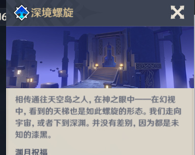 深渊会映射出神之眼使用者之中的螺旋天梯,通过倒悬的螺旋天梯,意志也会随之到达最接近深渊的地方。凭借着自身强大的实力和意志力抵达最后一间时,或许星辰与深渊都将为此撼动。注意一下,是或许。攻克了深渊最后一间,是真的抵达了临近深渊的地方吗,不,是旅行者的意志到达了最后一间。