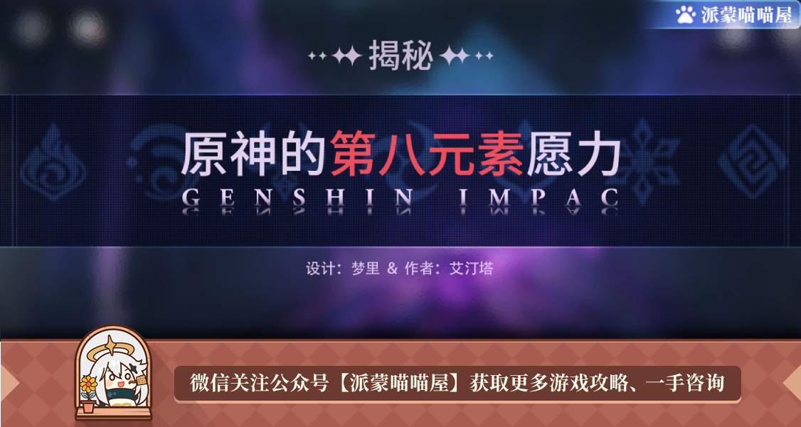 愿力,意志,信念,执念,欲望,人们因为有目标而努力,当时去了梦想和愿望,人就是一个行尸走肉。也正因为七情六欲,这个故事才会如此精彩,原神的第八元素愿力,存在于每个人的心中,存在于还没有忘记了梦想的人的心中。这是人与生俱来的,可以和天理抗衡的最终力量。