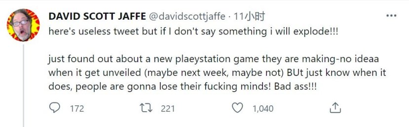 4.David Jaffe在推特发文称索尼PlayStation在9月9号的发布会上,第一方工作室公布的游戏不会让人失望,会让人发疯。