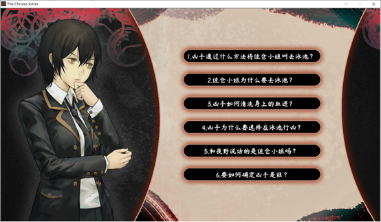 笔者最喜欢的一类小说就是推理小说,尤其是本格推理,绫辻行人的《钟表馆事件》是笔者最爱的推理类书籍。笔者看到本作带有“推理”的标签,以及从“莫言国g”和“吃货红毛”的访谈中得知本作采用的是本格推理,这些促使着笔者开始游玩本作。