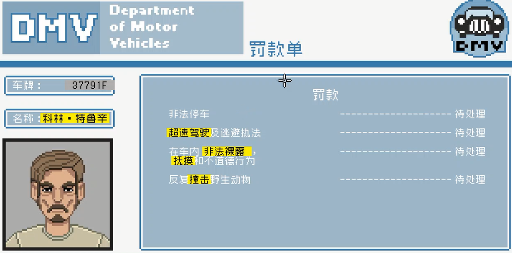 我搜索着车牌号,发现名为: 【科林·特鲁辛】 的车主,含有多个违法记录