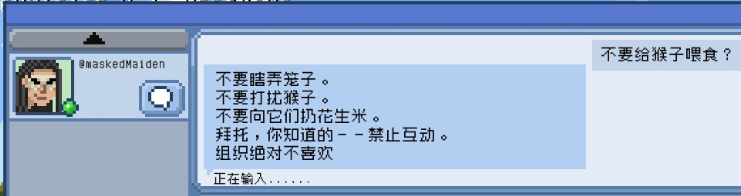 组织里的maskedMalden告诉我千万不能去打扰到猴子们的生活,禁止与他们产生联系及互动,我也不知道下场会是什么?不过我一直谨记着