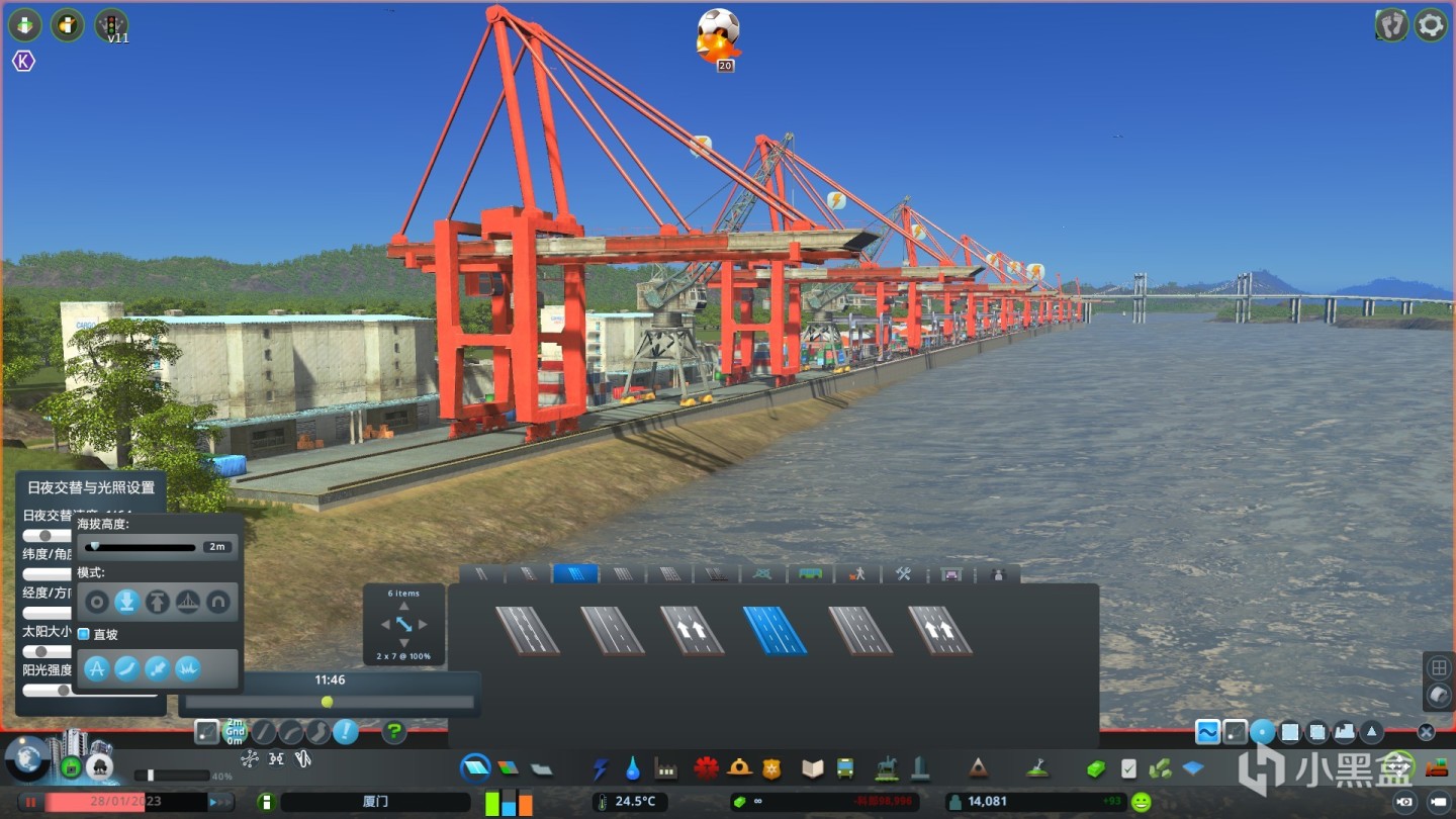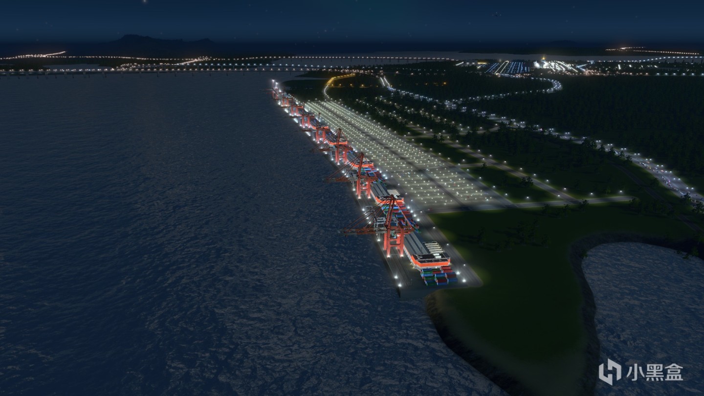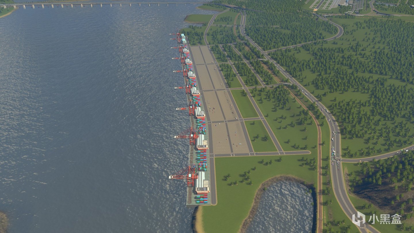 现在开始的就是本次建设中最最最考研耐心也是最最最累的一步了,运用Move it!模组,将每个货物转运中心整齐的摆在一起,中间不能有空隙,这样才能看起来是一整个港口!