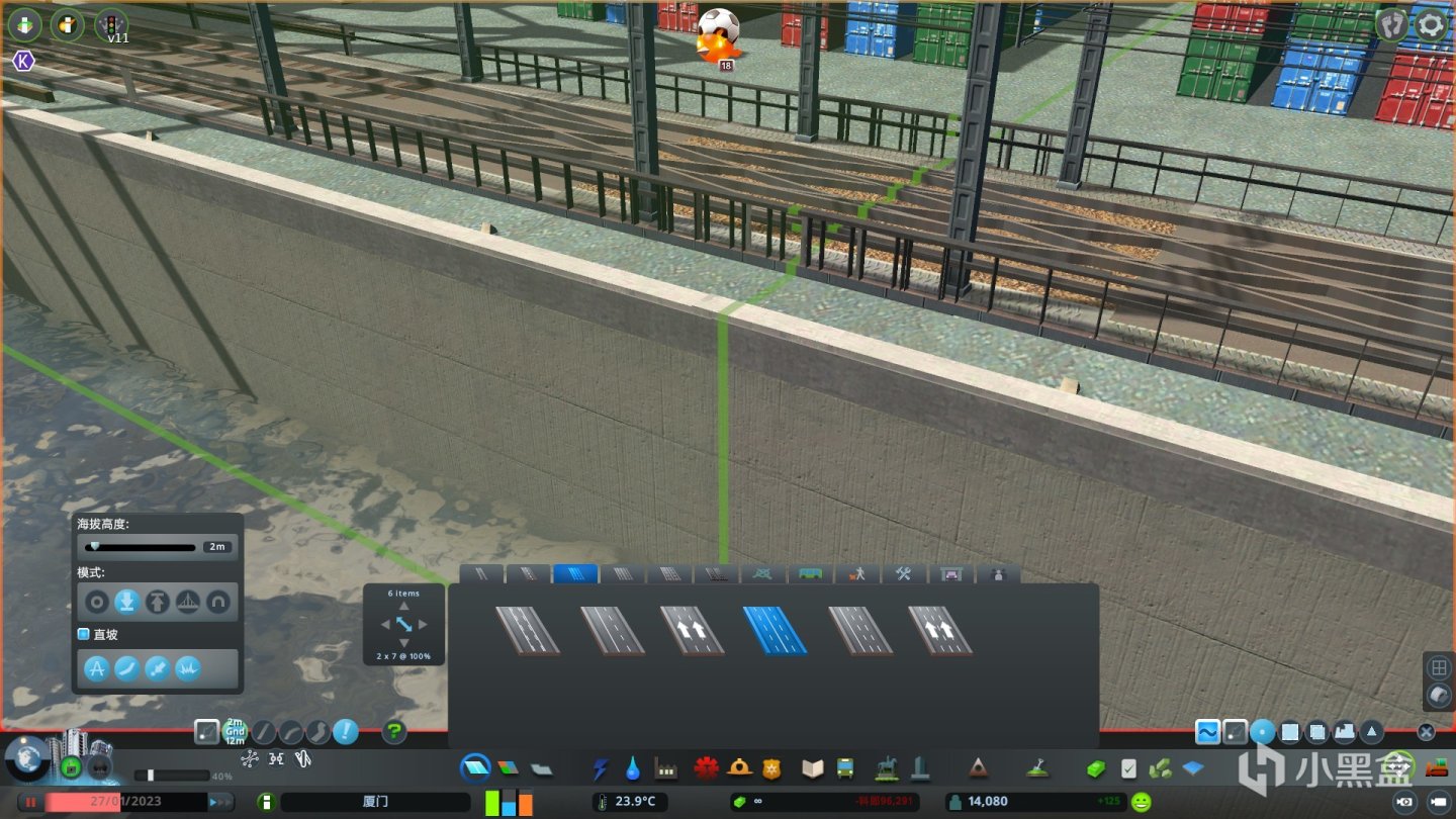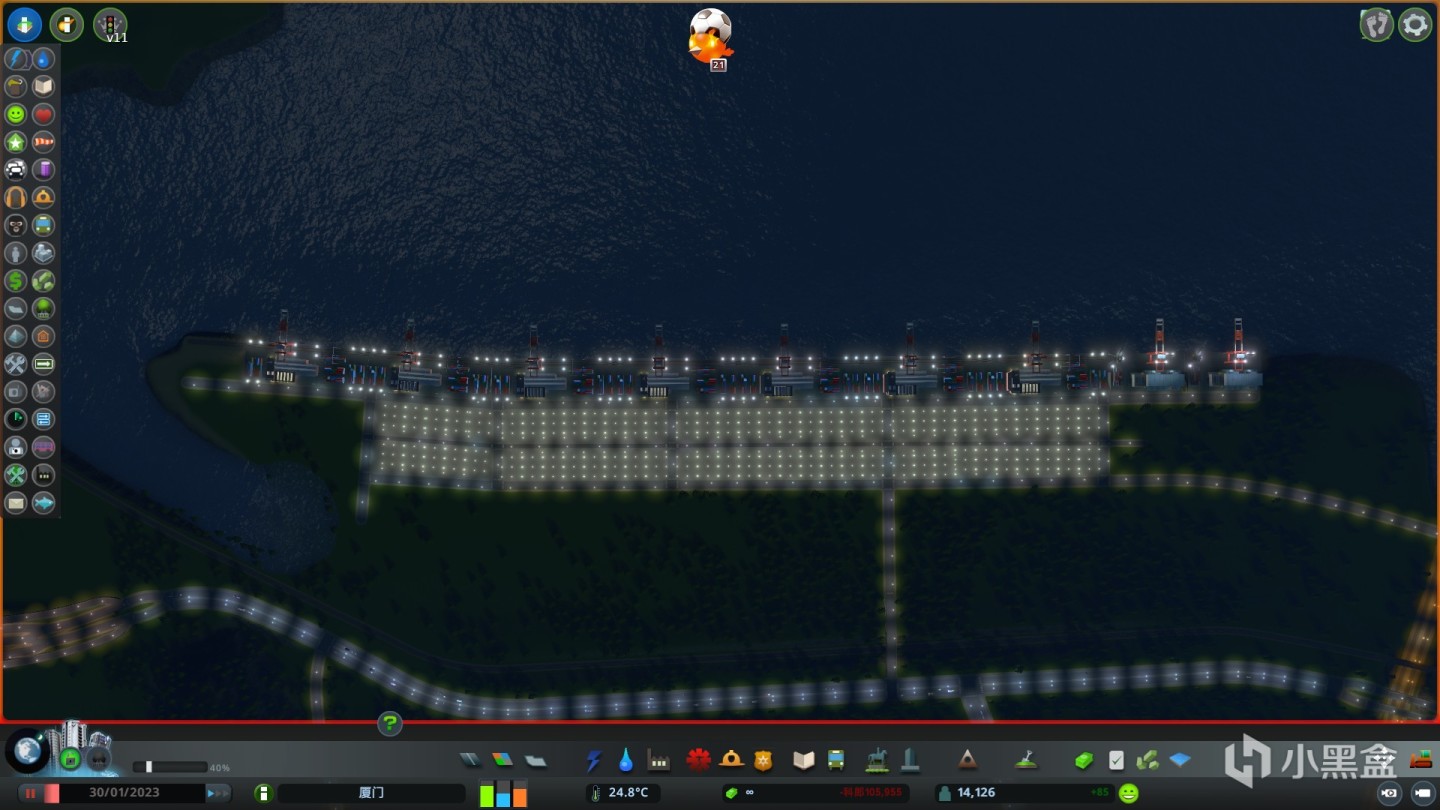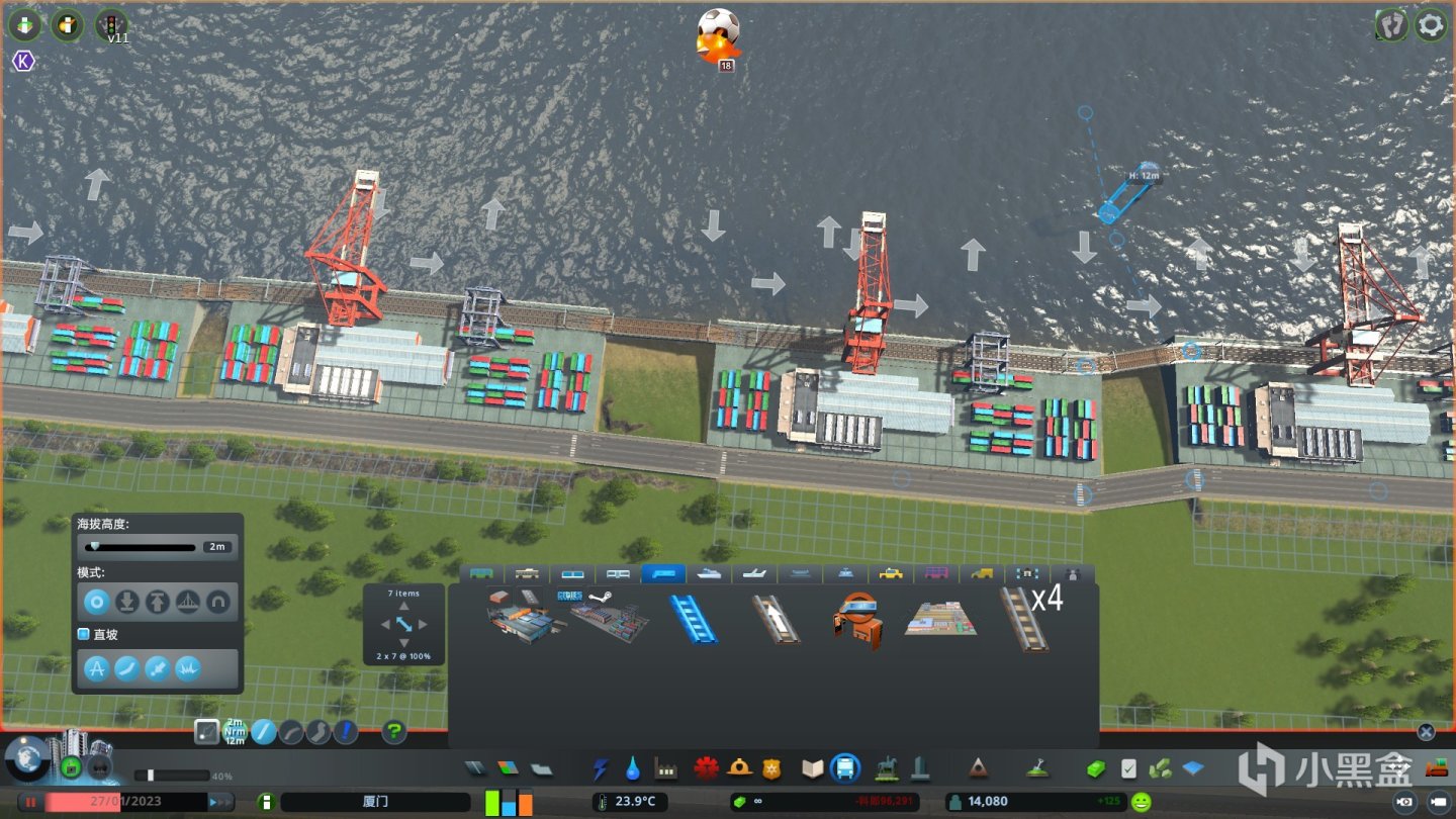 现在开始的就是本次建设中最最最考研耐心也是最最最累的一步了,运用Move it!模组,将每个货物转运中心整齐的摆在一起,中间不能有空隙,这样才能看起来是一整个港口!