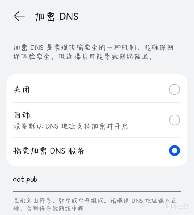 手机端不同的品牌操作方法不同,若只是想指定wifi的DNS,可修改wifi网络IP方式为静态。若是想开启DoH则需要手机支持,如华为手机设置项为加密DNS,如图