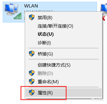 在系统设置->网络和Internet->更改适配器选项,里找到你所使用的网络连接方式,一般为无线(wlan)或有线,右键后选择属性
