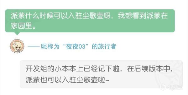 当初的开发组解答有那么一个片段,有玩家询问何时让派蒙入驻尘歌壶,得到的回答是后续版本。至于这个派蒙她究竟是站地上还是飘天上,等实装才知道。