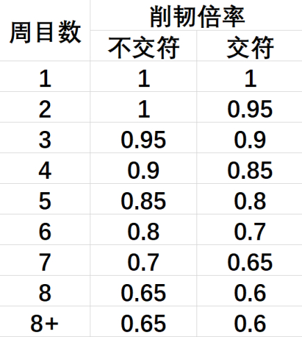 3. 多周目喝交符对削韧有减少,最高八周目只有60%的削韧值