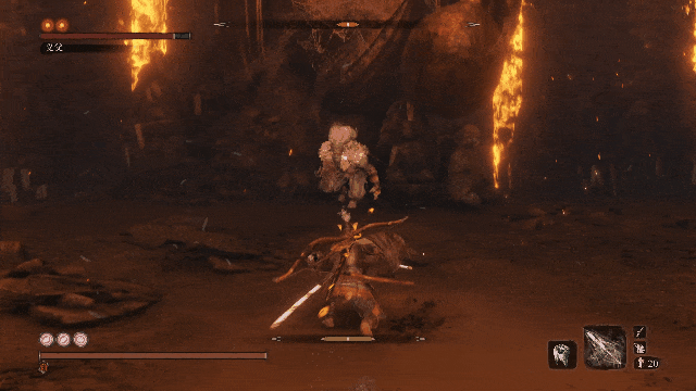 也是只狼中的打法之一,讲的是打孤影众的基本打法,打一下弹一下,因为孤影众出招直接干脆,没有什么连击,所以我们打一下就等他打我们,然后弹反他的攻击。