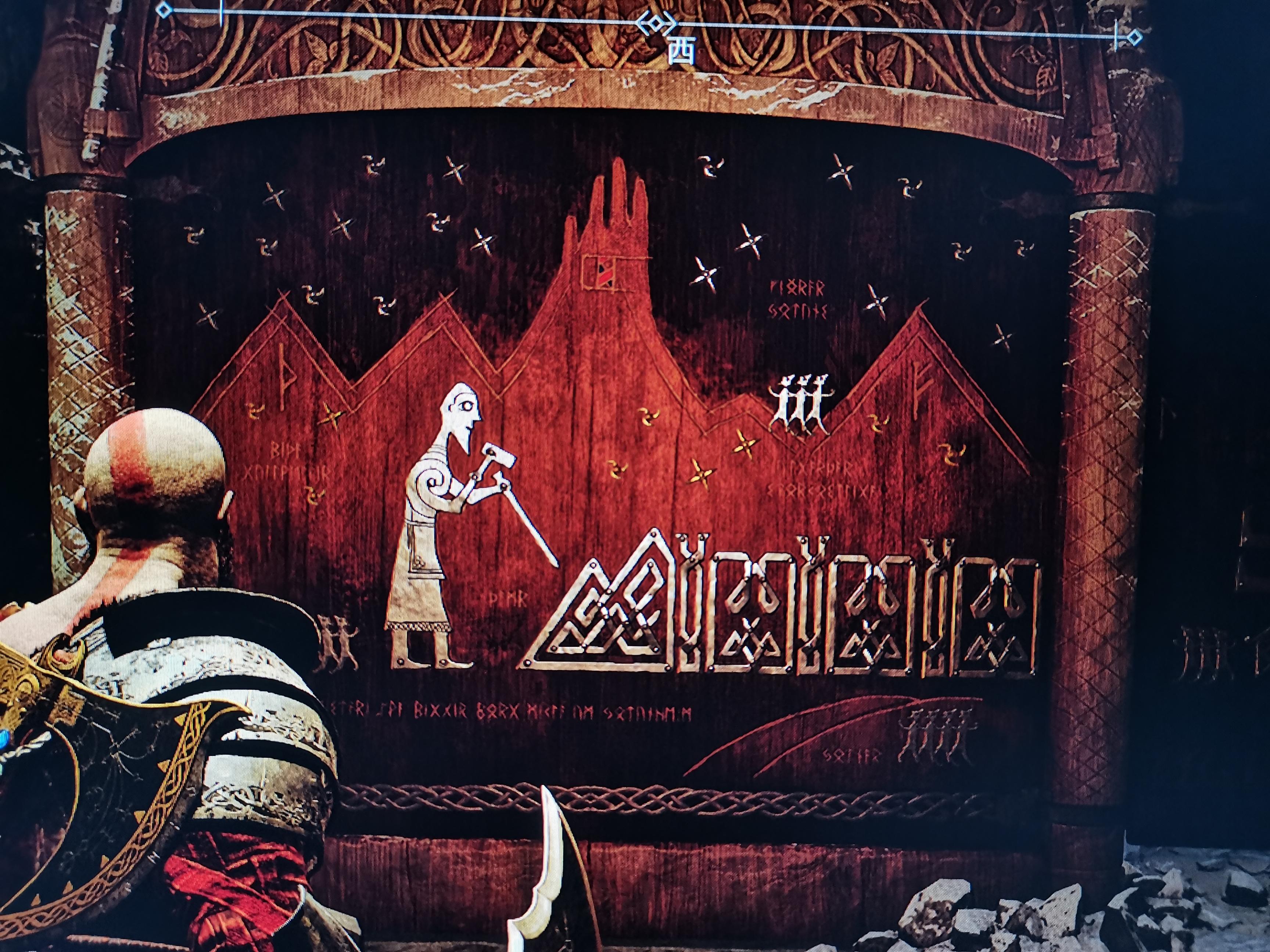 在北欧神话当中劳菲和巨人法布提生下了洛基,而游戏当中的壁画,(上面写着卢恩字母)叫奎爷就是法布提。