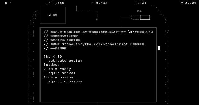 今天我们讲到的游戏《Stone Story RPG》(石头记)便是一款复古且画风清奇的别致游戏。它将ASCII码的字符化作全篇的美术基础,一面艺术,一面情怀。为玩家呈现出了一副简约而不失厚重,纯净却又极其丰富的游戏画卷。