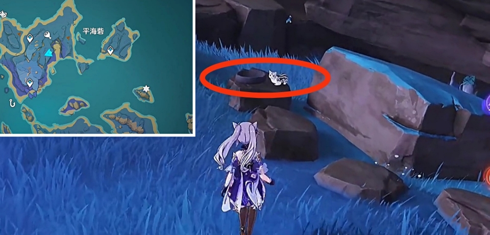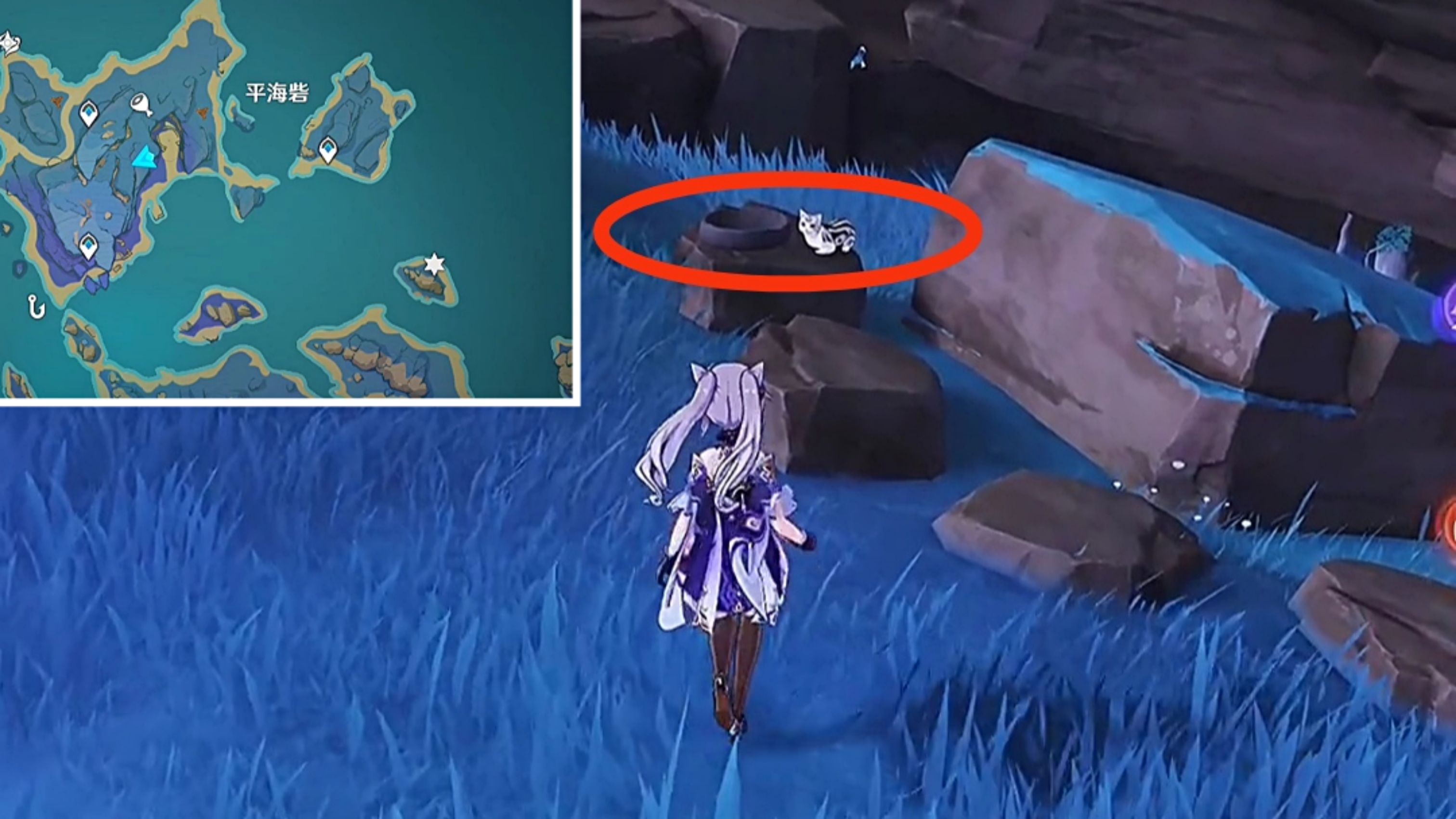 完成世界任务清籁逐雷记后,去下图位置接取任务:寝子是只猫