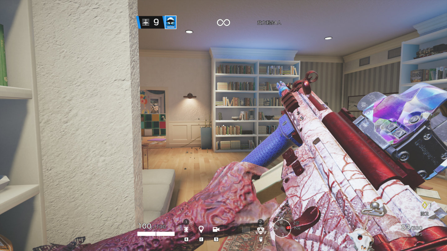 实际持枪效果,在室内暗处和亮处的鳞片不同效果。