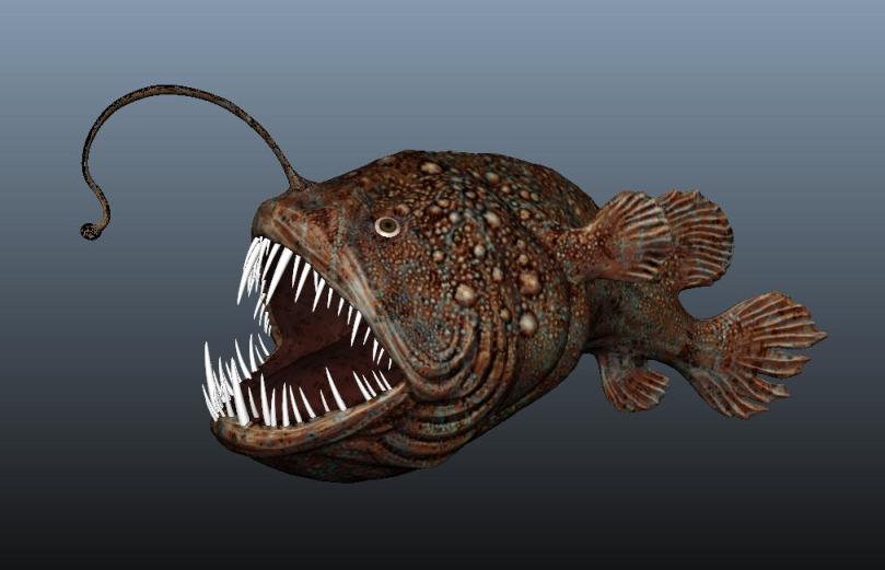深海鮟鱇,很多人俗称灯笼鱼,体无鳞片,密被绒毛状细刺,皮肤较厚。 头、体及各鳍均黑色。眼小,被皮膜所盖,眼间隔较宽。在我国生活在东海及南海外海1000 米以上的深水海域中。