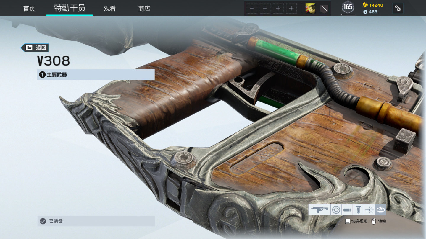 实际效果,能看到大部分枪皮细节。明亮处的木质区域沟槽真实。