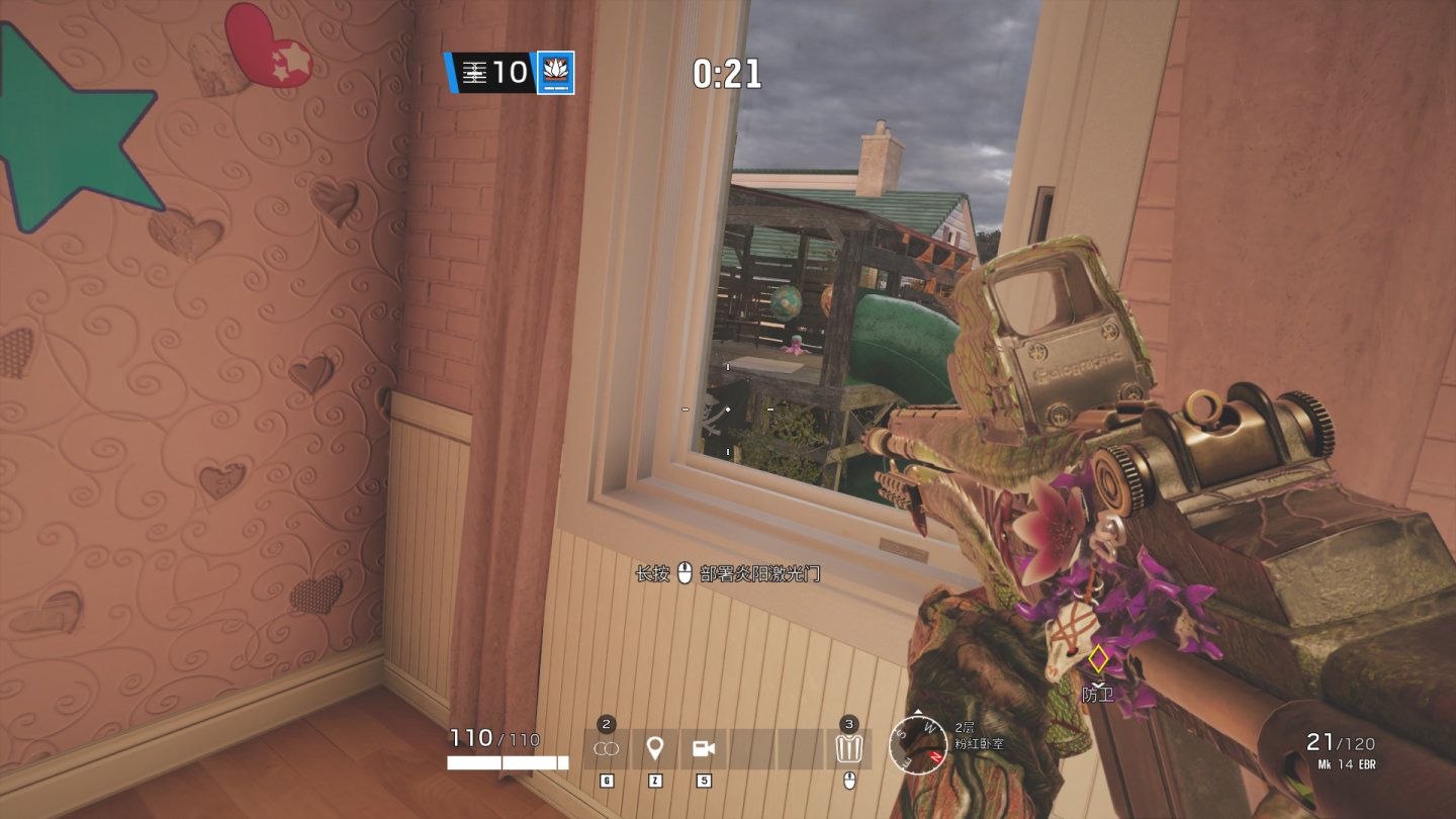 武器实际效果,枪体的紫色花朵能看到全部立体效果,自然持枪时,紫色花朵簇拥着挂饰,很自然。