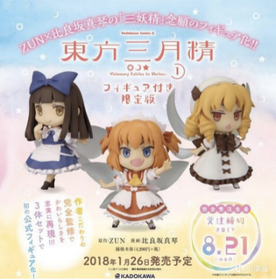 此外三小只还有“三月精”的别称,这起源于神主Zun授权,画师「比良坂真琴」老师参与绘制的官方漫画《東方三月精》。正常漫画和同人志都是以博丽灵梦和雾雨魔理沙这样的幻想乡强者为主角,而《东方三月精》则是采用了日月星三只弱小的妖精做主角,以她们的视角讲述了在幻想乡中的所见所闻,是一个轻松而又有趣的故事。本次《东方三月精》的画师之一「比良坂真琴」老师也专门为本作的发售发来了贺电绘图,的确是双喜临门。