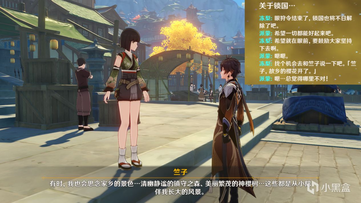还记得璃月港的竺子么?如今稻妻的眼狩令已经解除,锁国也没了,你可以回到璃月港告诉她“竺子,故乡的樱花开了”。只不过近一两年,这句话已经成为了调侃的烂梗,难怪派蒙会说:总觉得哪里不对!