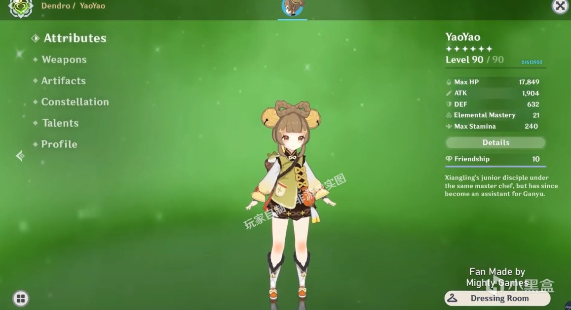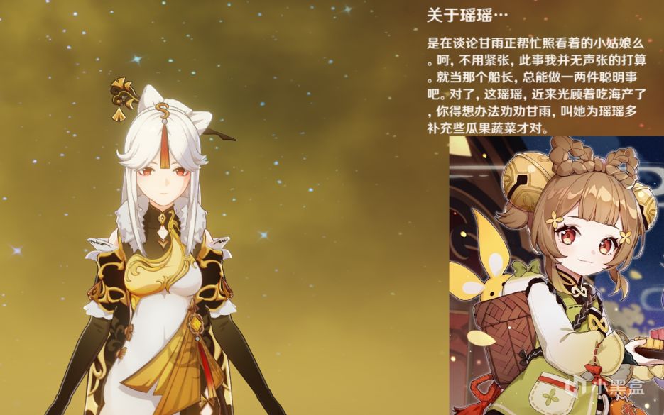 香菱的小师妹瑶瑶,目前甘雨是她的看护人。从各种璃月角色的口中可以大致推测,是一位小大人,虽然偶尔会有小孩纸的一面,但还比较懂事有时会反过来照顾甘雨。不出意外的话,应该会是一位草元素的萝莉角色。人物的具体刻画不多,但能感受到众人对其的喜爱。