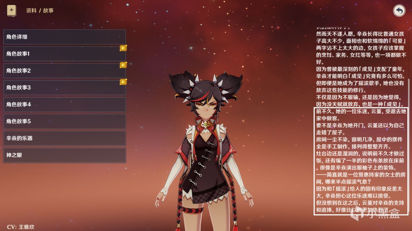 有趣的是,云堇和辛焱可以算是璃月港的两个极端,辛焱对外是热情摇滚实际上家中景象反而是贤惠持家还会编织做饭,云堇表面是那种精通琴棋书画喜爱花鸟鱼虫的人,实际上崇拜辛焱喜爱摇滚。