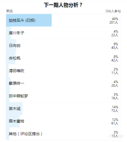 记得我刚写第一期江之岛盾子文章的时候,就发起过投票,结果是雾切响子成功进入下一篇。当时许多狛厨就坐不住了:“第一居然不是教主?”表示自己高估了狛枝的人气。