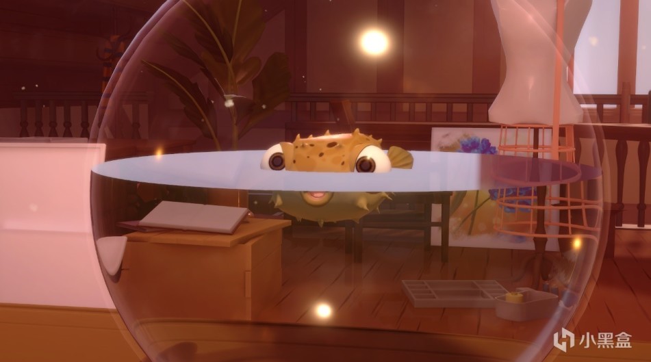 打开游戏几秒钟就开始了loading界面(孩子1660ti+垃圾处理器有这种速度还是很欣慰的...),主角之一的小金(金鱼),浮在球形鱼缸之中看着我们。