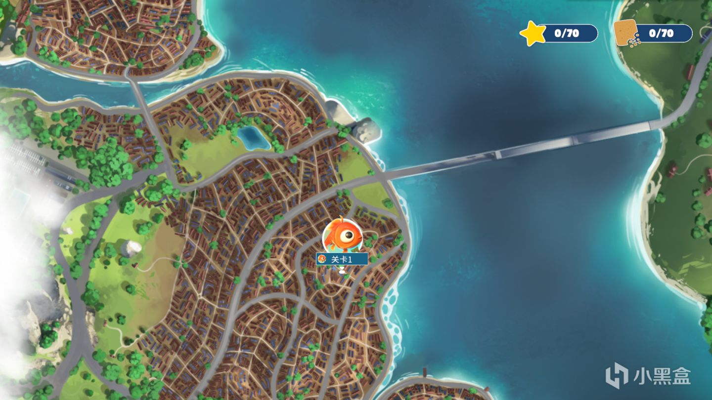 首先是一个选关界面,选关页的地图布局跟实际关卡相似度还是很大的,从中可以找到许多相似的点。右上角两个图标分别是星星(关卡评分)和面包(特殊收集品)
