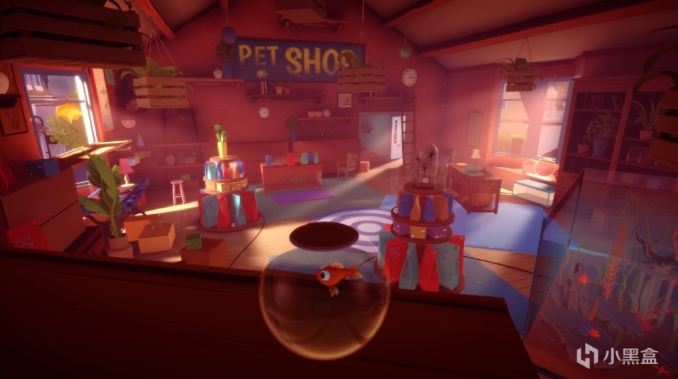 开场动画讲述了小金虽然身为宠物店的金鱼但是却有一颗向往大海的心,从而踏上奔赴大海的旅途。(插一句题外话,这里提倡广大盒友们不要去宠物店买一些家养动物去野外放生,这样对生态是没有任何帮助的,因为宠物店的宠物都是衣来伸手饭来张口的。不会对野外种群繁育有任何益处。)