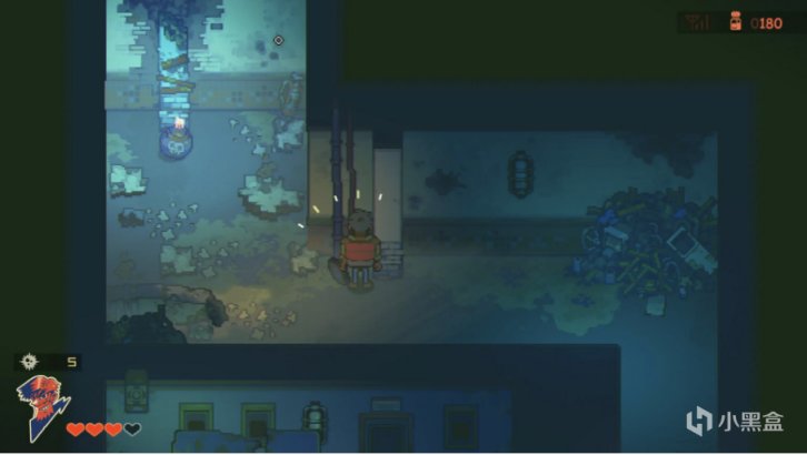 还记得让你欲罢不能的《炸弹人》么,本作在刚开始就让玩家在地牢式的迷宫中体验了一把炸弹人的感觉,约翰在矿洞清理鼻涕虫的时候,除了用平底锅清理普通的鼻涕虫,还需要用炸弹炸掉鼻涕虫的窝,注意躲避带着闪电的敌人,而这次战斗主人公的血量用心来展示,升级后还会增加一颗心,除此之外蓄力攻击运送沙果,利用珊的能量泡泡和场景互动等等。