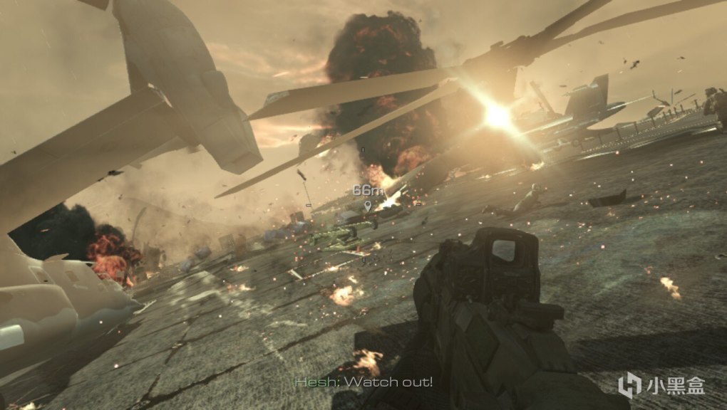 IW一开始目标就是对标自己曾经的作品,也是当时二战FPS游戏最顶级的作品《荣誉勋章》系列。不同于《荣誉勋章》只能扮演美军的设定,《使命召唤》在游戏中还能扮演苏军和英军,这也让游戏背景格局变的更大更史诗。同时游戏大量使用电影化叙事手法,让游戏变的很有美国二战大片的感觉。小航母印象最深的是小时候玩一关斯大林格勒保卫战的关卡,为了凸显苏军物资紧缺在码头下船后没有枪就得去冲锋,等队友死了捡了枪才能反击。由于玩的英文版那时我年少学浅看不懂英文字幕,一开始我以为没有枪是BUG,反复重启了游戏好几次。