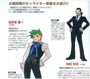 《逆转裁判》原案其实是少年目标成为大侦探的故事,且就连成步堂龙一最早的形象的设计也不是现在看到的刺猬头,而是一个绿头发的年轻小伙(20岁)。担任女主角的灵媒师「绫里真宵」则是被名为「鹿山羽纱树」的科学家替代,甚至棋逢对手的检察官「御剑怜侍」都是一副怪大叔模样(怎么你们还是忘年交啊?)。