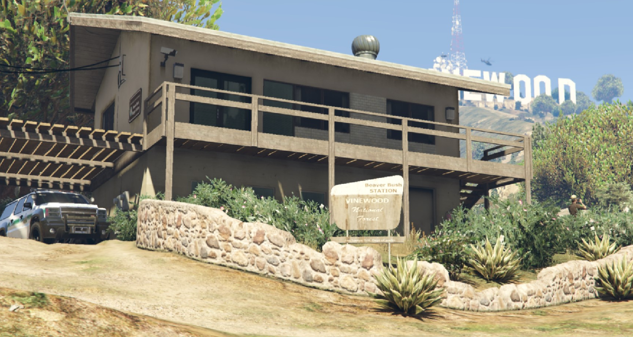 这座两层的楼房是圣安地列斯国家公园巡守员的一个站点,经常有一个巡守员拿着望远镜到处张望。它的旁边有一个小型车库,里边总是停着一辆国家公园警车。