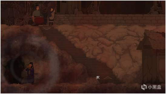 水墨画像素的风格在初见时就让笔者想到了《狄仁杰之锦蔷薇》,场景经过会开启的门,飘落的树叶,每个剧情人物几乎都有着自己的穿着特色,让玩家不至于搞混角色,即使没有表情也能通过一些小细节来认出他们,毕竟是自己跟随七云救下的人啊!