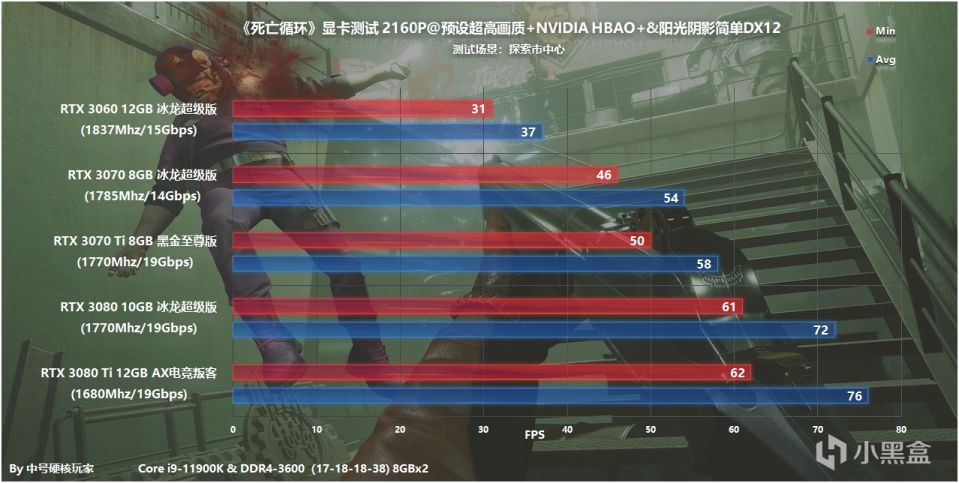 4K分辨率,正常情况也要推荐RTX 3070以上了(或者RTX 2080 Ti),这也是任何一款3A游戏的配置标准了,想稳妥一点选择RTX 3080就没错了,至于光追情况下,就要晋升一级到RTX 3070 Ti更好,这时候明显就和RTX 3070拉开差距,不过庆幸的是,对于旗舰级的RTX 3080 Ti,即便开启光追也能满足60帧以上了。