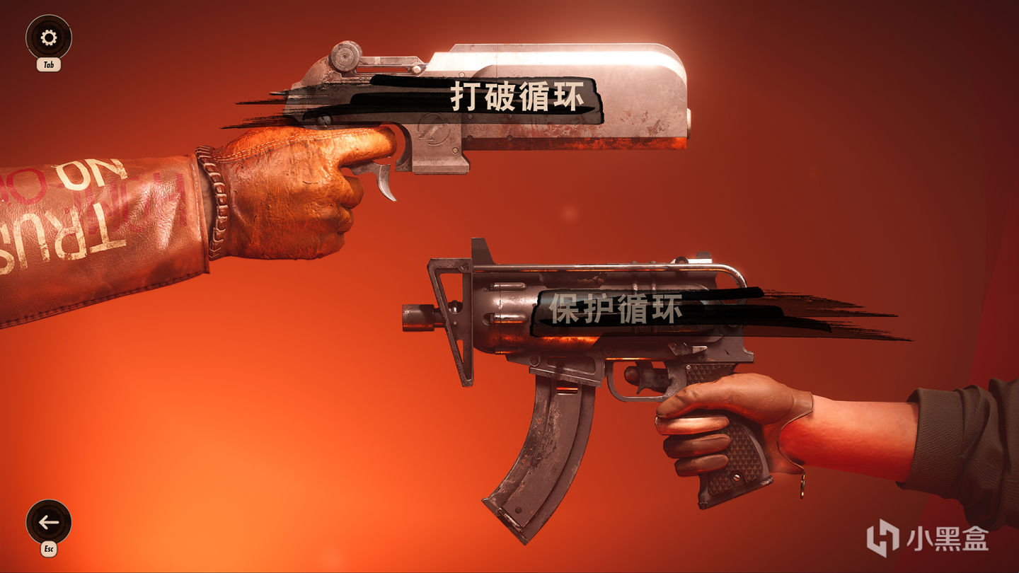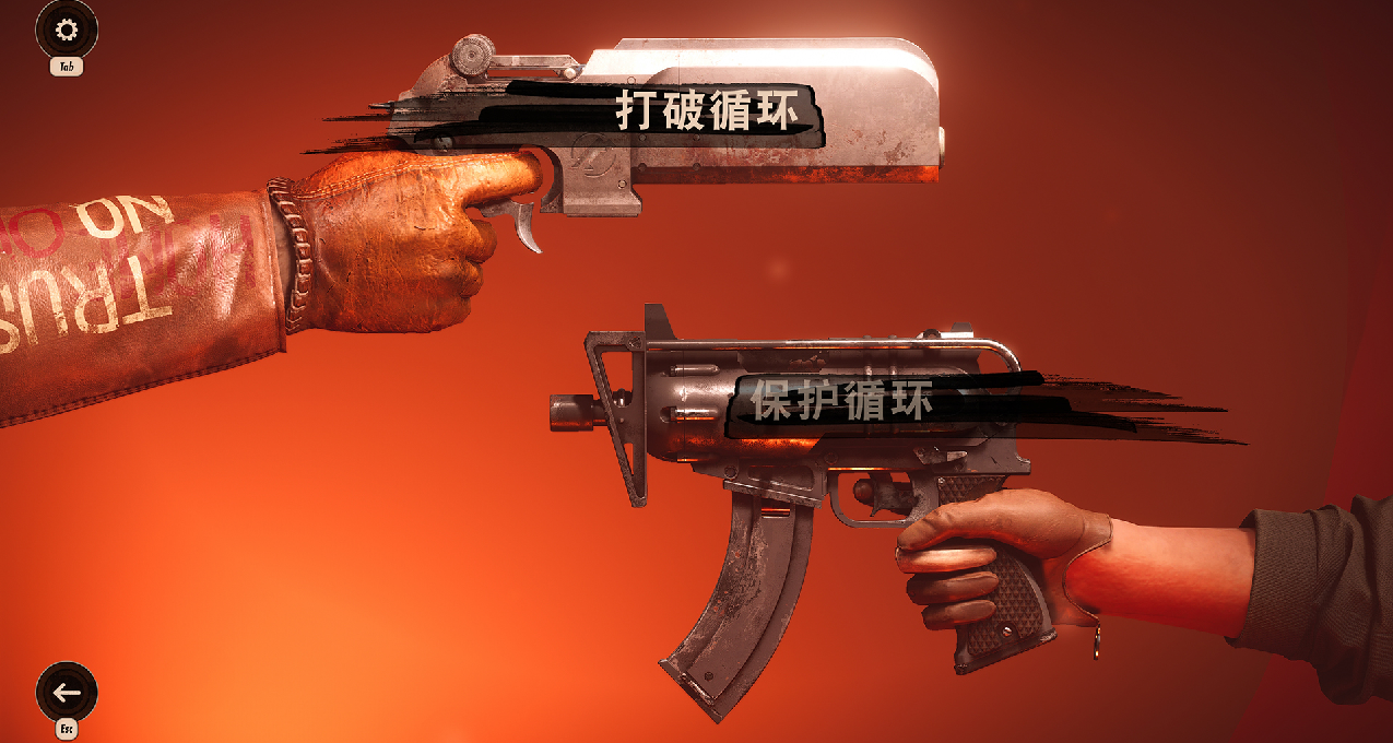 先简单聊聊游戏,显然《死亡循环》和《羞辱》相比,这款游戏更注重枪械的搭配使用,枪支类型种类很多,并且可以在枪支的槽位中镶嵌不同属性的饰品,这些东西都可以在关卡中搜寻到,和《羞辱》比较相似的机制是技能,基本就是侵入、隐身和隔空抓物等技能,也就铸造了这款缝合怪游戏,但满满都是A社游戏的特色。