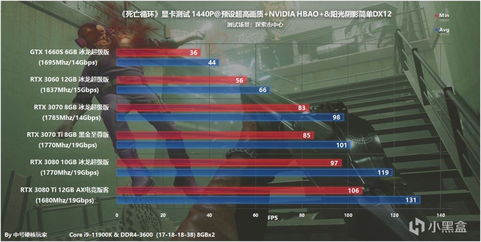内存是芝奇两条8GB DDR4 3600开X.M.P(17-18-18-38),尽可能贴近用户使用习惯,固态硬盘有十铨DELTA RGB 500GB、三星PM981 512GB两款作为游戏盘,搭载Windows 10 20H2最新系统、上个版本NVIDIA驱动471.96 WHQL(对《死亡循环》没有针对性优化)