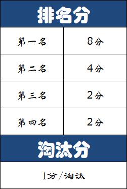 晋级规则:每周积分前4队伍晋级月度总决赛
