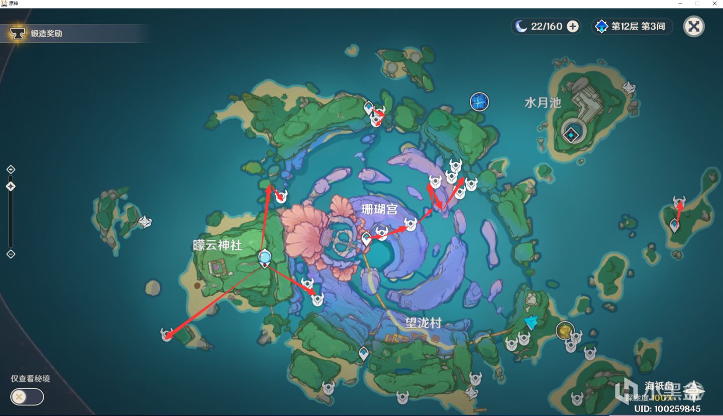 这个路线,右侧路线 最后的两个激活点 一个在两小小岛的中间,最后一个在三个石头组成的小阵中间,其他都还行,就注意一下高低差就好